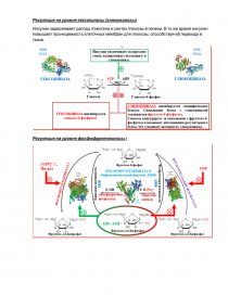 Инсулин задерживает распад гликогена и синтез глюкозы в печени. В то же время инсулин повышает проницаемость клеточных мембран для глюкозы, способствуя её переходу в ткани.