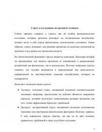 Но биологической функцией стресса является адаптация, благодаря которой он предназначен для защиты организма от угрожающих и разрушающих воздействий как физических, так и психических. Поэтому появление стресса означает, что человек включается в определенный тип деятельности, направленной на противостояние опасным воздействиям, которым он подвергается.