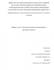 Реферат на тему: «Половые различия в возникновении и протекании стресса»