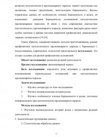 Данные о течении беременности и родов при прелиминарном периоде также недостаточно отражены в литературе. Имеются работы по этиологии данной патологии, свидетельствующие о том, что существенную роль в развитии патологического прелиминарного периода играют многоводие или маловодие, тазовое предлежание, многоплодная беременность. Весьма ограничены данные об особенностях течения беременности и родов, об изменениях динамики беременности, осложненной патологическим прелиминарным периодом. В связи с этим современная диагностика патологического прелиминарного периода, выявление факторов риска имеет особое значение в выборе методов первичной профилактики, рациональной терапии, оптимального [19;34].