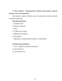 2.Банк проблем новорожденного ребенка при родовых травмах шейного отдела позвоночника…………………………………………………………….19