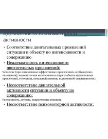 областей, соответствие мимики настроению, речи, теме беседы, двигательной активности