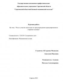 На тему: “Роль и участие медсестры по предупреждению преждевременного старения человека”