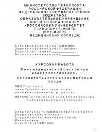 Целью настоящей работы является изучение влияния сестринского ухода при изосерологической несовместимости крови матери и плода. Для этого были сформированы следующие задачи: