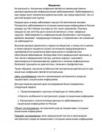 Цель исследования: изучить организацию сестринского ухода за пациентами с кишечными инфекциями.