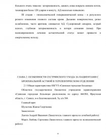 - Проанализировать работу медицинской сестры терапевтического отделения при уходе за пациентами с бронхиальной астмой.