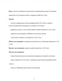 Объект исследования: сестринская деятельность по обучению пациентов с СД 2 типа