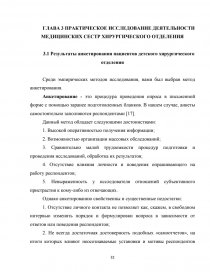 ГЛАВА 3 ПРАКТИЧЕСКОЕ ИССЛЕДОВАНИЕ ДЕЯТЕЛЬНОСТИ МЕДИЦИНСКИХ СЕСТР ХИРУРГИЧЕСКОГО ОТДЕЛЕНИЯ | 31 |
