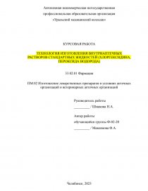 Предмет исследования - технология изготовления внутриаптечных растворов стандартных жидкостей на примере хлоргексидина и пероксид водорода.
