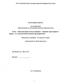Тема: «Организация использования машино-тракторного парка в сельскохозяйственном предприятии»