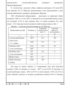 Как видно из данных таблицы 1.1, подавляющую часть всей земельной площади (11469 га) занимают с/х угодья – 10477 га или 91,8%. В структуре с/х угодий преобладает пашня – 6382 га (55,7% от всей площади). 27,4% или 3132 га земли занимают сенокосы, из которых улучшенными являются 1853 га. Площадь пастбищ составляет 933 га, улучшенных – 254 га. В хозяйстве имеются прочие угодья – 992 га, которые составляют 8,7% всей площади.