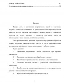 Важную роль в закреплении теоретических знаний и подготовки будущего грамотного специалиста и руководителя играет производственная практика, которая является продолжением учебного процесса. Именно на практике мы можем закрепить и применить полученные знания на производстве, а также вникнуть в проблемы хозяйства.