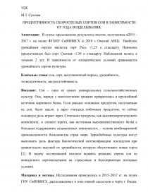 Ключевые слова: соя, сорт, вегетационный период, урожайность, технологичность, засухоустойчивость.