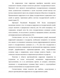 Президент Российской Федерации В.В. Путин неоднократно высказывал мнение о том, что вопросы коррупции на государственной службе следует включить в федеральную повестку дня. Он особо подчеркнул, что «гражданин, который хотел бы стать государственным служащим должен четко понимать, что вступление в должность неразрывно связано с жесткими антикоррупционными требованиями» [15].