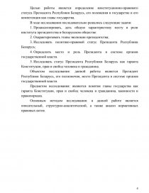 Целью работы является определение конституционно-правового статуса Президента Республики Беларусь, его положения в государстве и его компетенция как главы государства.