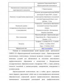 Тип, вид, статус учреждения | Государственное бюджетное профессиональное образовательное учреждение Свердловской области «Краснотурьинский политехникум» |