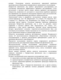 Значительный вклад в разработку исследуемого вопроса внесли такие ученые-правоведы, как Г.Ф. Шершеневич, А.А. Рыков, Л.Р. Бадахова, В.А. Степанов, Е.С. Пирогова, О.В. Негребецкая, К.Б. Кораев, В.А. Барковец и некоторые другие юристы. Отдельные правовые проблемы применения процедуры банкротства физических лиц и пути их решения, нашли отражение в научных работах В.Ф. Попондопуло, В.С. Белых, А.А. Дубинчина и ряда других правоведов. Научные труды перечисленных авторов представляют солидную теоретико-методологическую базу для настоящего исследования. Однако несмотря на это в научных исследованиях не все проблемные вопросы в данной сфере решены.