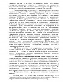 Степень разработанности проблемы в отечественной и зарубежной науке. Большой вклад в исследование проблемы внесли мыслители Нового времени: Т. Гоббс (отказ людей от своего суверенитета на основе договора в пользу государства), Дж. Локк (суверенитет народа, верховенство закона, разделение властей, роль частной собственности), Ш. Монтескье (суверенитет народа и личности, развил теорию разделения властей), Ж.-Ж. Руссо (цель правительства в осуществлении общей воли, т. е. поддержании народного суверенитета), И. Кант (правовое государство и всемирное правовое государство), А. Фергюсон (гражданское общество как состояние цивилизованности), Т. Пейн (ограничении власти государства в его пользу общества), В. Гумбольдт (гражданское общество и государство как два противоположных полюса), Г. Гегель (эволюция и структура гражданского общества, его взаимоотношения с государством). Так же эта проблема разрабатывалась А. Токвилем (гражданское общество как внегосударственная сфера активности людей), К. Марксом (гражданское общество как ступень общественного развития и как социальная организация, находящейся между базисом и надстройкой), А. Грамши (роль структур гражданского общества в надстройке).