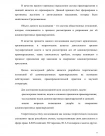 Объект данного исследования – это система общественных отношений, которые складываются в процессе рассмотрения и разрешения дел об административных правонарушениях.