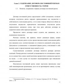 Глава 2. СОДЕРЖАНИЕ ДОГОВОРА ПОСТОЯННОЙ РЕНТЫ И ОТВЕТСТВЕННОСТЬ СТОРОН 12