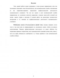 Тему данной работы можно раскрывать в очень разных направлениях, ведь она несомненно охватывает очень большой раздел, как муниципальная служба и вытекающая из нее нормативно-правовое закрепления профессиональной деятельности муниципального служащего. Так как все задачи и цели муниципальной службы направленные на улучшение качества управления, создание каких-либо условий для жизни, защита страны и регионов. В данной работе мы рассмотрим должностную инструкцию и ее значение на профессиональную деятельность муниципального служащего.