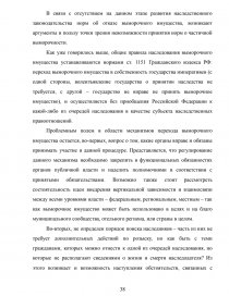 Кроме того, отсутствует правовая регламентация порядка перехода выморочного имущества – безусловно, юридическая наука не оставляет без внимания институт правопреемства выморочного имущества, но на данный момент круг исследований, затрагивающих эту проблематику ограничен.