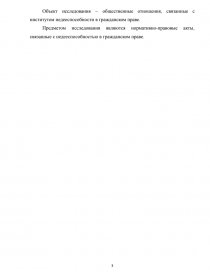 Объект исследования – общественные отношения, связанные с институтом недееспособности в гражданском праве.