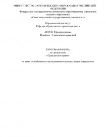 на тему: «Особенности наследования отдельных видов имущества»