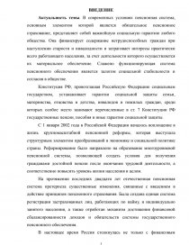 Актуальность темы. В современных условиях пенсионная система, основным элементом которой является обязательное пенсионное страхование, представляет собой важнейшую социальную гарантию любого общества. Она финансирует содержание нетрудоспособных граждан при наступлении старости и инвалидности и затрагивает интересы практически всего работающего населения, за счет деятельности которого осуществляется их материальное обеспечение. Слажено функционирующая система пенсионного обеспечения является залогом социальной стабильности и согласия в обществе.
