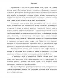 Актуальность темы договора мены доказывается тем, что этот институт играет весьма важную роль в гражданском обороте и правовых, экономических отношениях в стране с развитой рыночной экономикой. Именно развитие товарно-денежных и прочих экономических и гражданских отношений влечет за собой необходимость в законодательном определении и обосновании способов мены. Сложность и многозначность определения мены вызвана большим содержанием данного понятия, а предметами договора могут являться движимое и недвижимое имущество, вещи, товары и др. Исходя из этого возникают трудности и для законодательного определения мены, и для толкования норм договора, что является проблемой для современного гражданского общества.