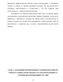 ГЛАВА 3. ТЕНДЕНЦИИ ФОРМИРОВАНИЯ СУДЕБНОЙ ПРАКТИКИ ПО СПОРАМ О ЗАЩИТЕ ПРАВА РЕБЕНКА ОТ ЗЛОУПОТРЕБЛЕНИЯ СО СТОРОНЫ ВОСПИТЫВАЮЩИХ ЕГО ЛИЦ…………………………………...37