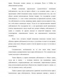 Первая концепция представляет собственность в качестве “продолжающейся свободы личности” и отождествляет её непосредственно с объектом или имуществом, принадлежащим на праве собственности, которым человек может владеть (и отстранять третьих лиц от владения вещью), использовать в соответствии со своими интересами, распоряжаться также по своему усмотрению. Здесь основным отношением, опосредующим собственность, является отношение человека и вещи или имущества. Также эту концепцию можно связать с взглядом на само происхождение собственности – божественное или государственное. С первым ассоциируется концепция триады неотчуждаемых прав: право собственности на свое тело (и, соответственно, право на свободу мысли и слова), право на индивидуальную собственность (она возникает в процессе трудовой деятельности человека), право наказывать тех, кто нарушает первые два права. Последнее можно связать со взглядами Руссо и Гоббса на общественный договор.
