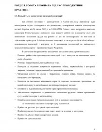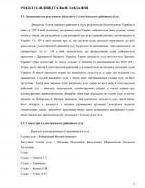 В процесі проходження виробничої практики я повинний був ознайомитися з нормативними актами які регулюють судову діяльність у Солом’янському районному суді м. Києва, ознайомитися із правозастосовною діяльністю, зокрема з порядком розгляду справ судами, із оформленням справ, забезпеченням їх схоронності, ведення звітної документації, оформленням особистих справ працівників, ознайомитися з нормативно-технічними документами, стандартами з питань охорони праці, які діють в суді, веденням ділової документації.