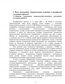 Курсовая работа посвящена теме «Начальник подразделения дознания в российском уголовном процессе». В работе рассматривается роль начальника подразделения дознания в российском уголовном процессе. Дается характеристика основных направлений процессуальной деятельности начальника подразделения дознания. Большое место в работе уделено полномочиям начальника подразделения дознания. Подробно описываются проблемы осуществления полномочий начальника подразделения дознания на досудебных стадиях российского уголовного процесса.