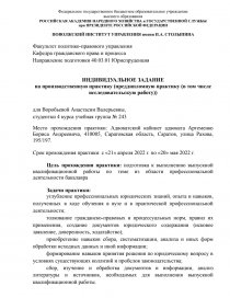 Место прохождения практики: Адвокатский кабинет адвоката Артеменко Бориса Андреевича, 410005, Саратовская область, Саратов, улица Рахова, 195/197.