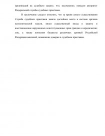 Отдел судебных приставов входит в систему органов Министерства юстиции Российской Федерации, считается органом принудительного исполнения, осуществляющим функции согласно обеспечиванию определенного режима деятельности судов, исполнению судебных актов и актов иных организаций. Возможности службы судебных приставов, порядок ее организации и деятельности формируют ФЗ "Об исполнительном производстве" и ФЗ "О судебных приставах".