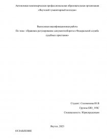 По теме: «Правовое регулирование документооборота в Федеральной службе судебных приставов»