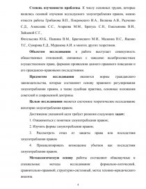 Степень изученности проблемы. К числу основных трудов, которые являлись основой изучения исследуемого злоупотребления правом, можно отнести работы Грибанова В.П., Покровского И.А., Волкова А.В., Радченко С.Д., Алексеева С.С., Агаркова М.М., Братусь С.Н., Емельянова В.И., Зайцевой С.Г.,