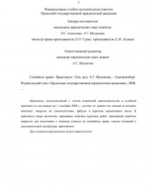 Семейное право: Практикум / Отв. ред. А.Г. Малинова. – Екатеринбург: Издательский дом «Уральская государственная юридическая академия», 2008. –