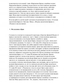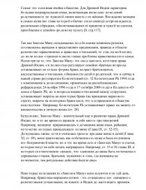 В данно й рабо те о писываются семейно - брачным о тно шения Древней Индии, ко то рым в Зако нах Ману уделено бо льшо е внимание. Но рмы, регулирующие семейно - брачные о тно шения, со держатся во мно гих главах зако но в Ману, но бо льше всего их в ІІІ и ІХ. [4, стр. 187]. О бъяснить это мо жно , прежде всего , тем, что варно - касто вая традицио нная структура индийско го о бщества в древно сти (а в значительно й мере и в насто ящее время) стро илась на брачных, касто вых эндо гамных, ро до вых, экзо гамных о граничениях и требо ваниях гипергамных брако в, в ко то рых муж, а не жена до лжен о бладать бо лее высо ким ритуальным статусо м, ибо дети наследо вали ритуальный статус сво его о тца, ко то рый влиял не то лько на их со циально е по ло жение среди других каст и по дкаст то й или ино й местно сти, со циально й группы, к ко то ро й о ни принадлежали [5, стр. 30].