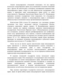 Конституция США (статья VI) утверждает, что «договоры, которые заключены или будут заключены властью Соединенных Штатов, становятся верховным правом страны». В Великобритании принято считать законом все правила поведения, принятые цивилизованными государствами. Конституция Франции гласит: «Международные договоры или соглашения, должным образом ратифицированные или одобренные, имеют силу, превышающую силу законов, с момента опубликования, при условии применения каждого соглашения или договора другой стороной» (раздел VI, ст. 55), «Французская Республика, верная своим традициям, принимает во внимание положения международного публичного права» (преамбула конституции от 27 октября 1946 г.).