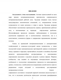 Актуальность темы исследования. Активно происходящий во всем мире процесс интернационализации производства сопровождается интернационализацией рабочей силы. Трудовая миграция стала частью международных экономических отношений, т.к., миграционные потоки устремляются из одних регионов и стран в другие. Трудовая миграция обеспечивает несомненные преимущества странам, принимающим рабочую силу и поставляющим ее, порождая определенные проблемы. Интенсификация процессов миграции, наблюдающаяся в последние десятилетия выражается как в количественных показателях, так и в качественных, изменяются формы и направления передвижения трудовых потоков. Одним из проявлений интернационализации и демократизации хозяйственной и социально−культурной жизни человечества, а также последствий острых межнациональных противоречий, прямых столкновений между странами и народами, чрезвычайных ситуаций и стихийных бедствий являются крупномасштабные внутристрановые и межстрановые перемещения населения и трудовых ресурсов в разных формах. Мировое сообщество, еще недавно не ощущавшее непосредственно размеры, особенности и последствия миграционных процессов на международном уровне, столкнулось с необходимостью координации усилий многих стран по разрешению острых ситуаций и коллективному регулированию миграционных потоков. Анализ современного состояния и тенденций мировой экономики свидетельствует о том, что в последние десятилетия происходит системная трансформация мирового хозяйства, основным феноменом и главным вектором которой выступает глобализация хозяйственных процессов. В современном глобализирующемся мире международная миграция населения стала важным фактором мирового развития, обеспечивающим гибкость международного рынка труда, приобщение более отсталых стран к мировой культуре производства, более рациональное с точки зрения мирового прогресса перераспределение факторов производства, взаимодействие и взаимообогащение культур.