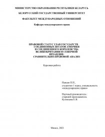 Правовой статус глав государств США и соединенного Королевства Великобритании и Северной Ирландии: сравнительно-правовой анализ