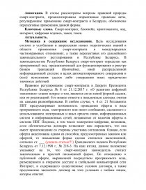 Аннотация. В статье рассмотрены вопросы правовой природы смарт-контракта, проанализированы нормативные правовые акты, регулирующие применение смарт-контракта в Беларуси, обозначены перспективы применения данной формы.
