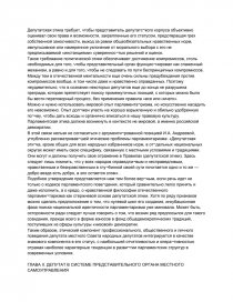 В современных условиях повышается роль депутатского мандата, суть которого выражается в представительском статусе депутата. Представительный орган местного самоуправления не только принимает нормативные правовые акты (в чем как раз и заключается его нормотворческая функция), но и выражает интересы местного сообщества. Выражение этих интересов проявляется исключительно посредством депутатской деятельности. Помимо указанного, хотелось
