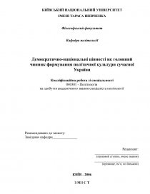 Демократично-національні цінності як головний чинник формування політичної культури сучасної України