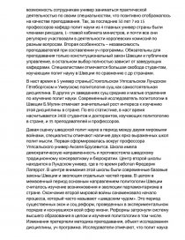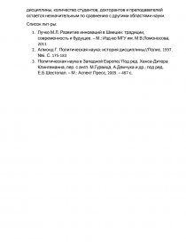 Развитие полит науки в Швеции в 20 в имело ряд интересных особенностей. Так, в стране действовал закон, позволяющий преподавать политологию не более 4 часов в неделю, чтобы дать возможность сотрудникам универ заниматься практической деятельностью по своим специальностям, что позитивно отображалось на качестве преподавания. Так, за последние 50 лет 7 из 15 профессоров кафедр полит науки из 4 главных универ страны были членами риксдага, 1- главой кабинета министров, и почти все они регулярно участвовали в деятельности королевских комиссий по разным вопросам. Вторая особенность – независимость преподавателей при составлении уч программы. Обязательны для преподавания только конституциональный закон Швеции и публичное управление, в остальном выбор полностью зависит от заведующих кафедрами. Специалистами отмечается большая свобода студентам, изучающим полит науку в Швеции по сравнению с др странами.