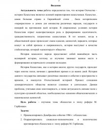 Цель работы – изучение темы «Казахстан в эпоху реформ М. Горбачева».