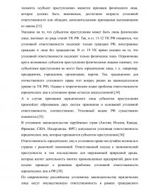 Так в Российской Федерации субъектом преступления и носителем уголовной ответственности может быть: «только вменяемое физическое лицо, достигшее возраста, установленного Уголовным Кодексом РФ».[1]