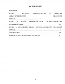 Структура работы достаточно логична и представлена в виде введения, трех глав и заключения. Предложенная последовательность изучения англо-саксонской правовой семьи представляется наиболее оптимальной для детального и всестороннего освещения данной темы. Такая структура позволяет наиболее полно раскрыть тему и не допустить путаницы в исследовании.